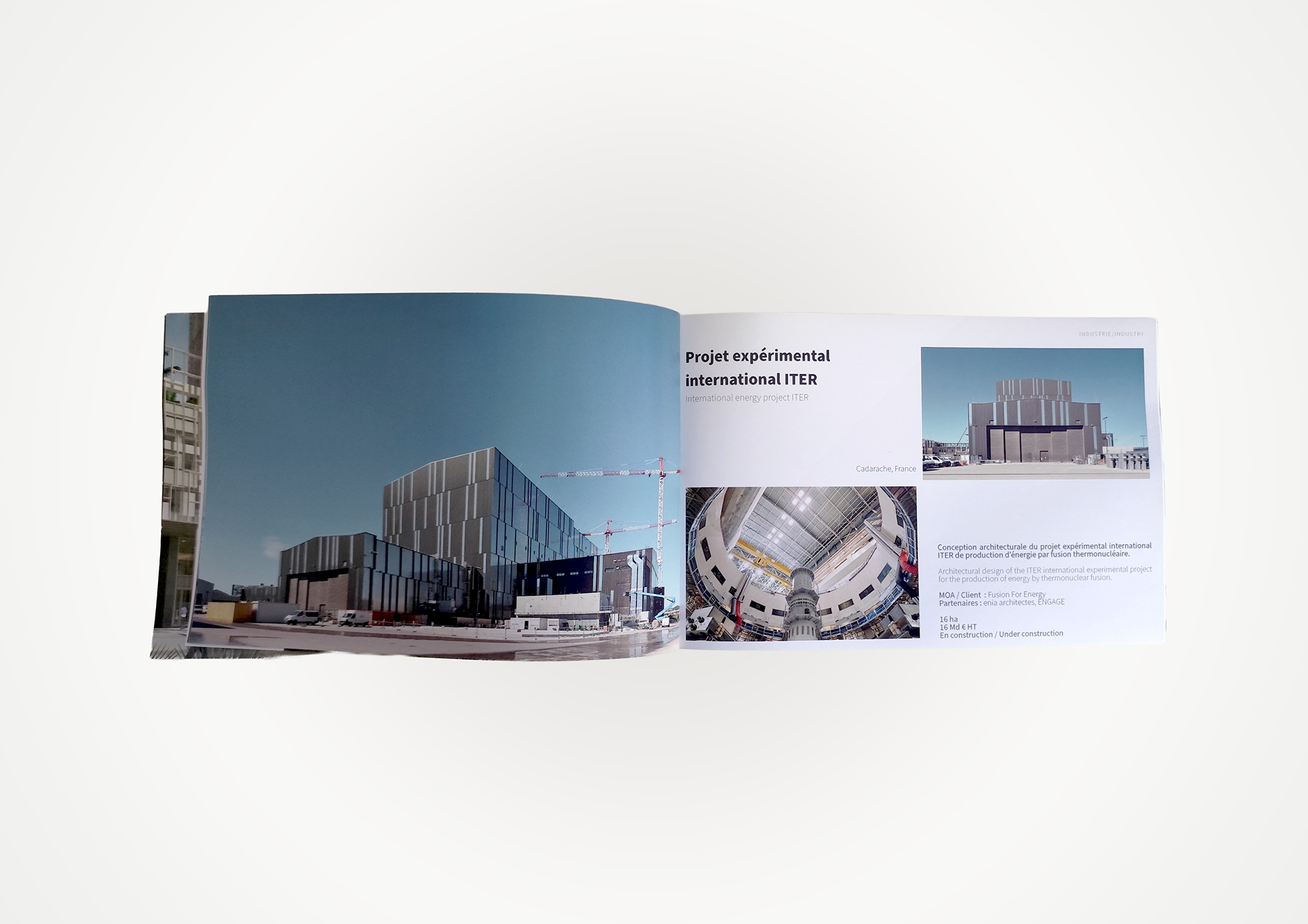 Conception de brochures, livrets d’architecture, affiches et templates de présentation, dans le respect d’une charte graphique unifiée.