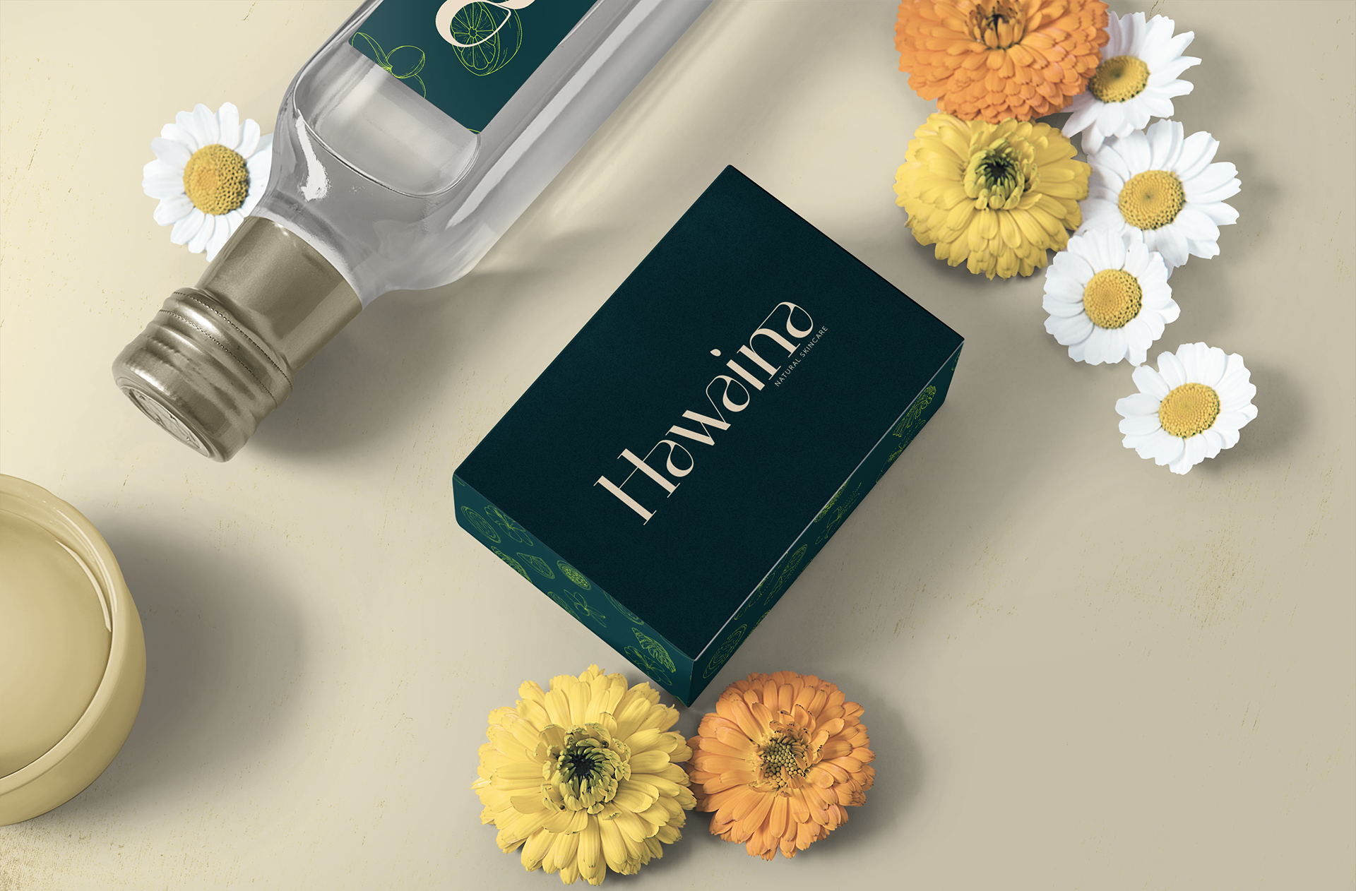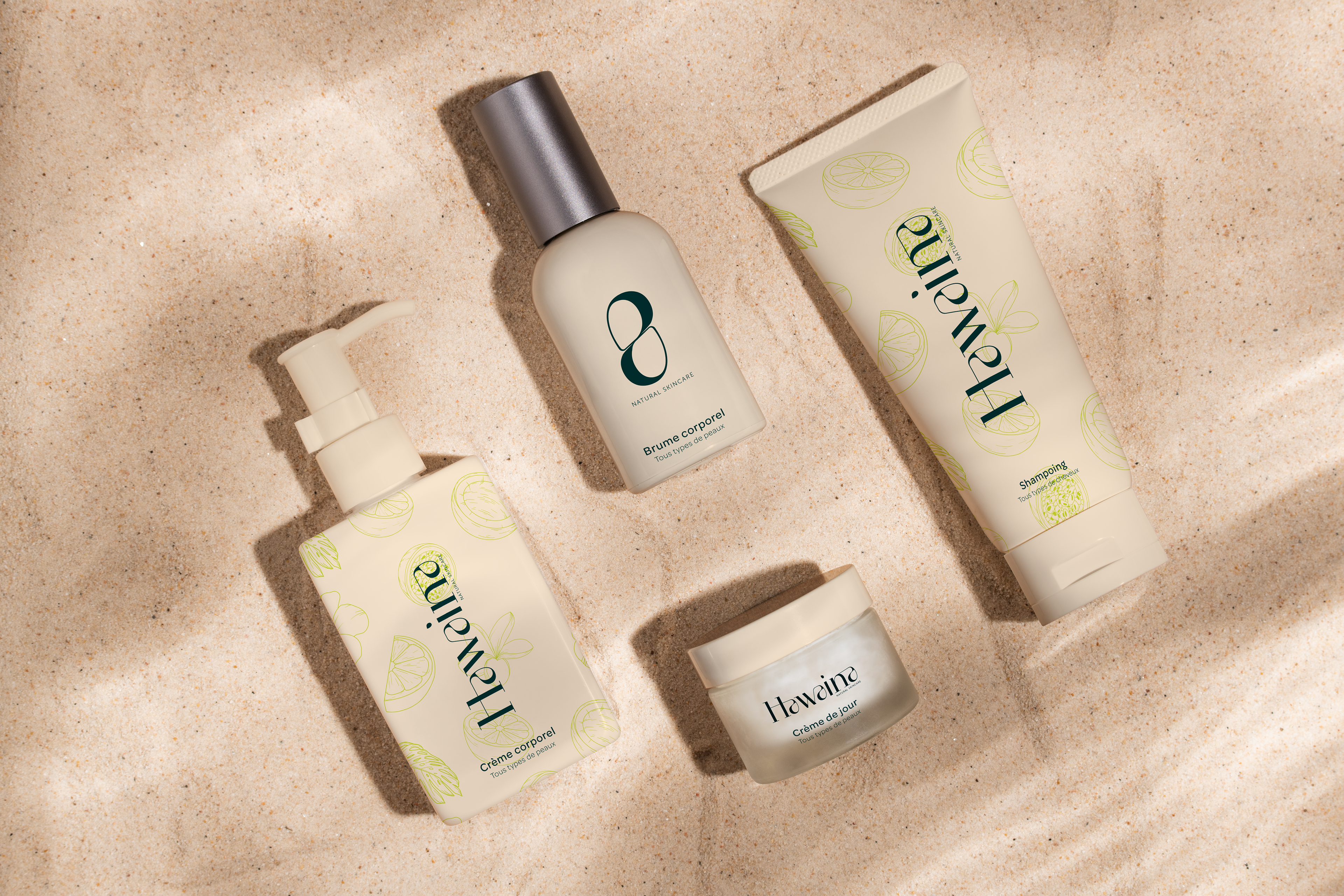 Hawaina est une marque de cosmétiques qui s'engage pour une beauté plus responsable. Ses produits sont naturels et respectueux de l'environnement. La marque avait besoin d'une identité visuelle qui reflète immédiatement ces valeurs d'authenticité et de durabilité, sans artifice inutile.