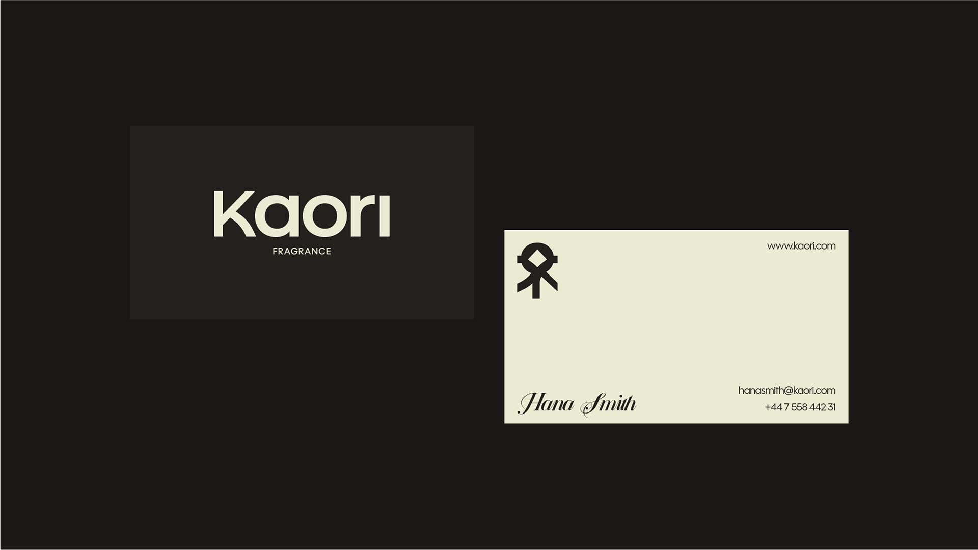 L’identité vise à cristalliser l’essence de la fragrance dans un ensemble visuel ainsi que ancrer Kaori comme une maison à la fois élégante et puissante.